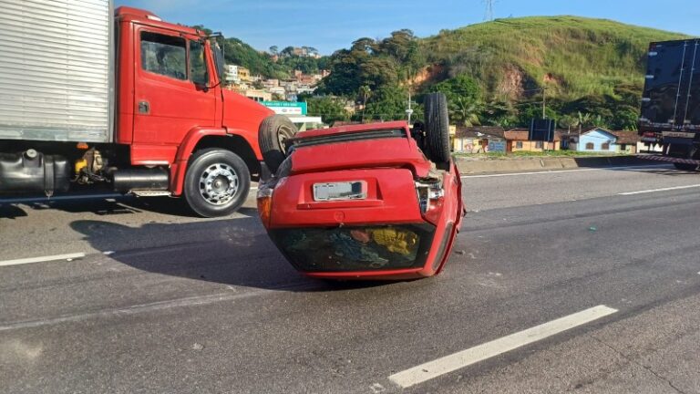 Veículo capota na Dutra em Barra Mansa; motorista estava com CNH vencida e licenciamento irregular