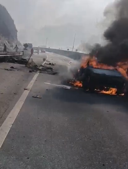Equipes do Corpo de Bombeiros Militar do Estado do Rio de Janeiro atuaram no resgate, com apoio de um helicóptero. O acidente envolveu uma carreta carregada com combustível, que explodiu, além de outros veículos. Um dos carros chegou a ser completamente consumido pelas chamas, e uma motocicleta também esteve entre os veículos atingidos.