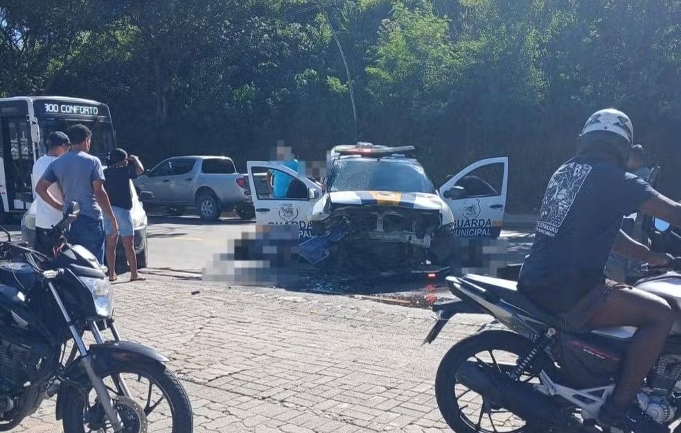De acordo com informações, o veículo trafegava com sirene e luzes de emergência acionadas, o que é permitido em situações de atendimento, conforme o Código de Trânsito Brasileiro. Na batida, um guarda municipal sofreu ferimentos leves.